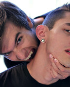 AJ Abner is trying to break into his own car, or steal someone else's, when Conner Bradley comes onto the scene. Thief or not, AJ isn't subtle about what he wants... a piece of Conner. What's a vampire to do but oblige a horny young twink' The two exchange oral, and wet rim jobs, before AJ gets all of Conner's eight inches up his ass. The two fuck before the scenes reaches a climax with a double facial.